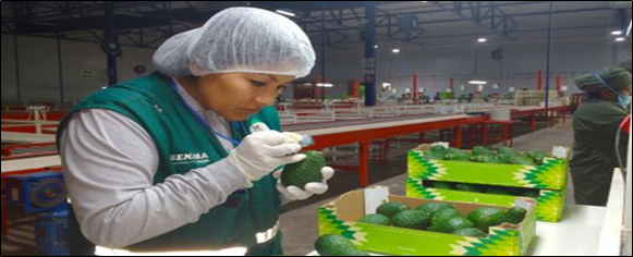 Durante el empaquetado de Palta Hass que se van a exportar a Estados Unidos.